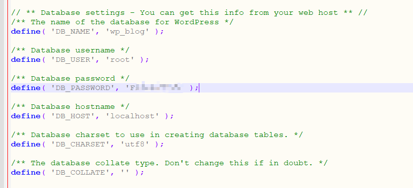 修改根路径下配置文件:wp-config.php