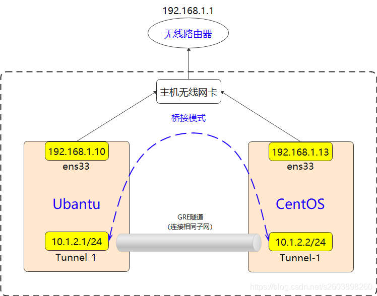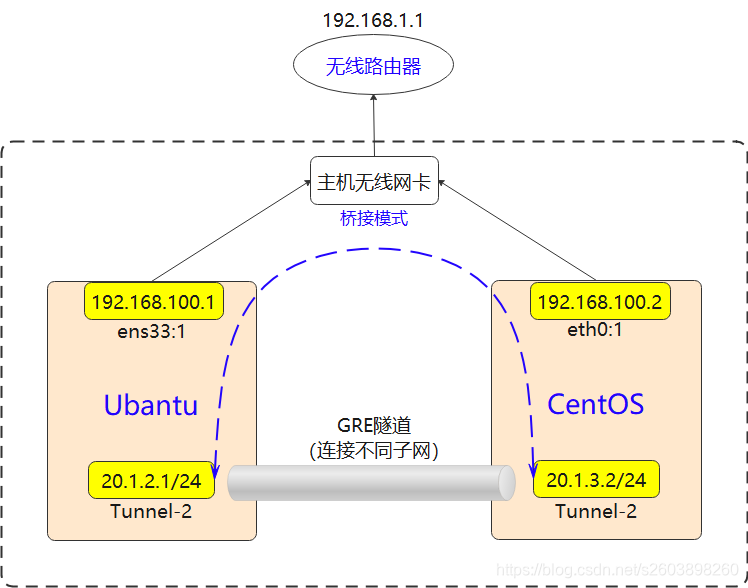 搭建GRE隧道环境实际上是很简单的,因为Linux内核已经支持了GRE隧道,因此直接在虚拟机(ubantu和CentOS)里进行简单的配置即可完成操作。