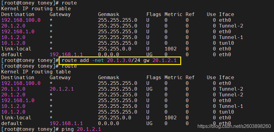 route add -net 20.1.3.0/24 gw 20.1.2.1