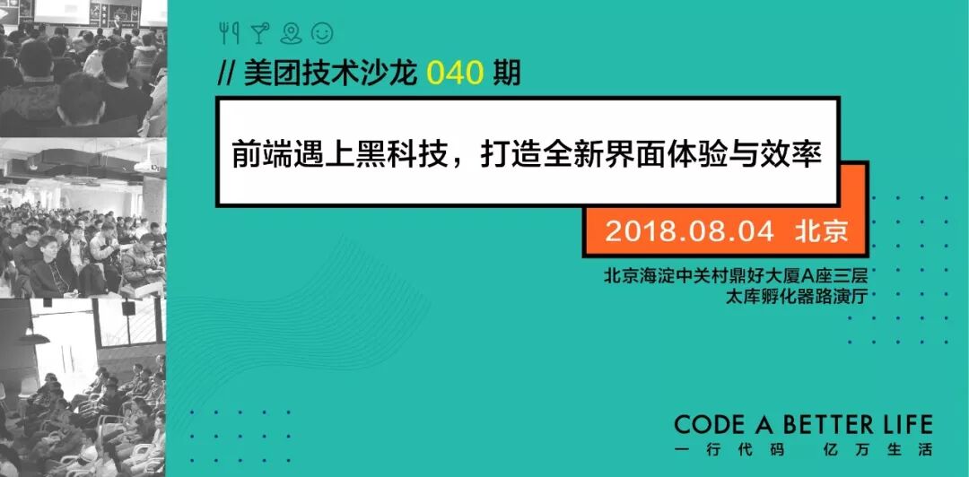 《美团技术沙龙第40期·北京:前端遇上黑科技,打造全新界面体验与效率》8月4日周六下午,美团联合百度技术专家为大家揭秘如何让 Hybrid 项目和 Native 体验一致?如何让项目只需要交互稿便可以开始研发?如何让页面首帧速度优化 70% 以上?如何让Node.js 在百度扛起百亿级访问量?更多活动详情请戳>>活动报名链接