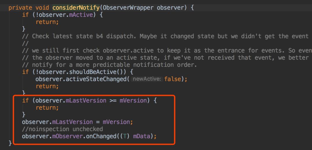 不需要再解决生命周期带来的问题,LiveData可以感知被绑定的组件的生命周期,只有在活跃状态才会通知数据变化。
