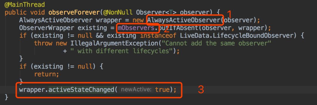 LiveData需要一个观察者对象,一般是Observer类的具体实现。当观察者的生命周期处于STARTED或RESUMED状态时,LiveData会通知观察者数据变化;在观察者处于其他状态时,即使LiveData的数据变化了,也不会通知。