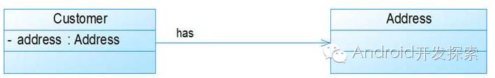 我们可以看到,在UML类图中单向关联用一个带箭头的直线表示。上图表示每个顾客都有一个地址,这通过让Customer类持有一个类型为Address的成员变量来实现。