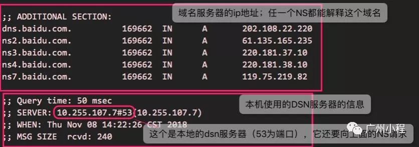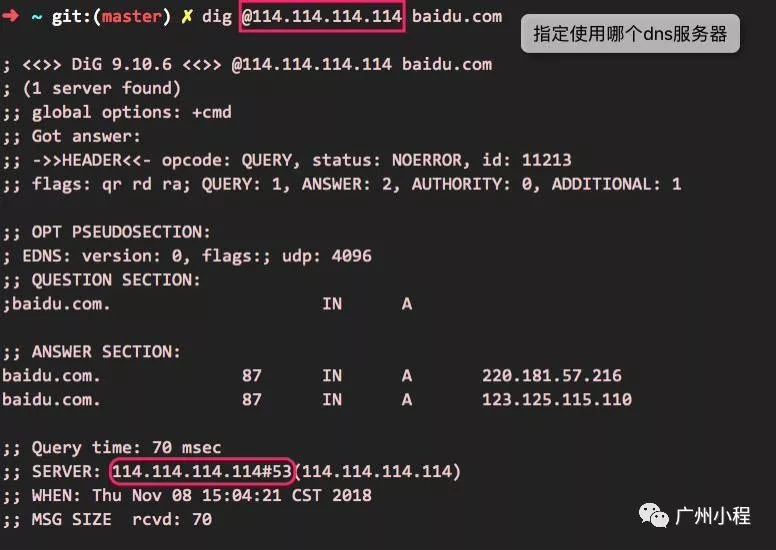 在使用dig时,也可以直接指定使用哪个dns服务器进行查询,比如这样: