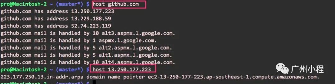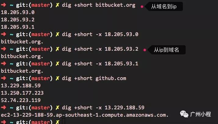 dig可以把域名转成ip,也可以把某些ip转出域名: