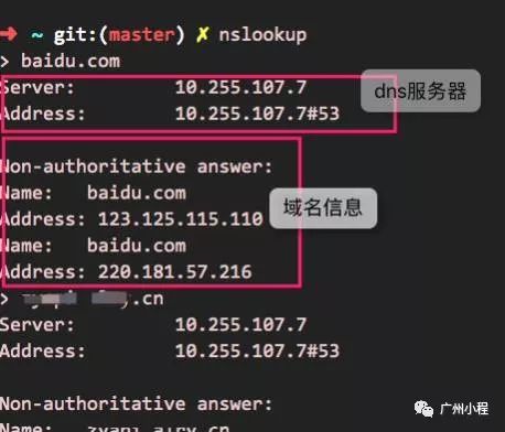 nslookup是一个交互的命令,输入域名,输出ip,比如: