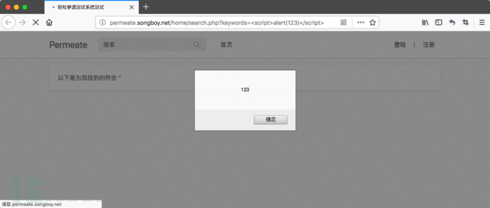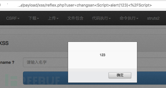此时payload已经被触发,说明找到了一个反射型XSS的漏洞,这种漏洞相对来说非常初级,随着浏览器的XSS筛选器变得更加智能,这种漏洞也越来越少,在下面的内容当中笔者将会提到存储型XSS挖掘与绕过。