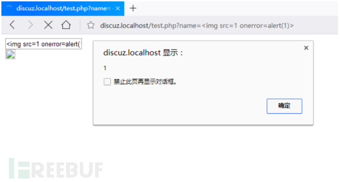 在图中可以看到攻击者的参数被原样放到了HTML代码当中,导致原本的结构被改变,当这份代码被浏览器执行之后,将执行alert事件。