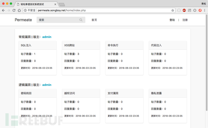 经过上一节的原理介绍,笔者相信大家对XSS已经有一些了解,现在笔者需要进行手工XSS漏洞挖掘,在手工挖掘之前笔者需要先逛逛网站有哪些功能点,如下图是permeate的界面
