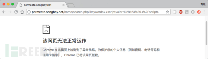 接下来就需要看看笔者的payload有没有被触发,结果很意外,不但没有被触发还被浏览器所阻止了,如下图