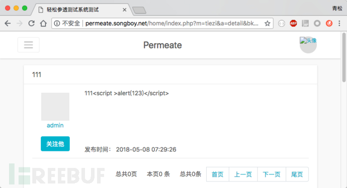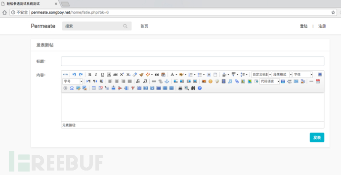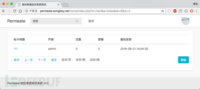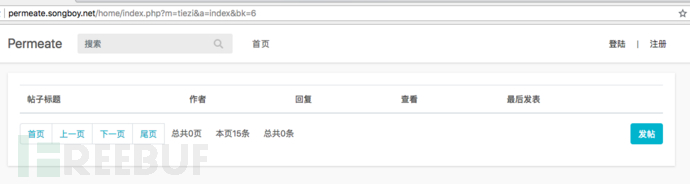 现在笔者来寻找存储型XSS,存储型的攻击代码是存储在服务端,因此需要找出一些会将表单内容存储到服务端的位置,笔者在之前已经对permeate做了一番了解,因此知道permeate拥有发帖和回帖功能,这些功能正是需要将参数存储起来并展示的地方。