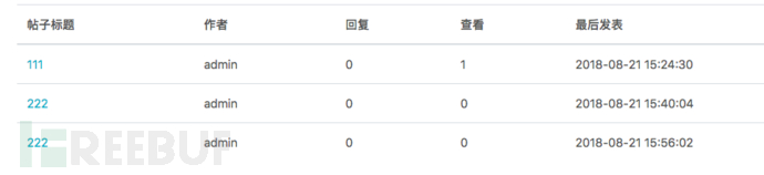 在返回结果当中可以看到提示发帖成功,此时就笔者已经成功发布了一个新帖子,回到帖子列表当中看到有三条帖子,在最后面的帖子则是笔者新发布的,如下图