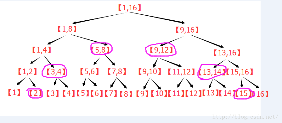 Sum[pos] = Sum[pos << 1] + Sum[pos << 1 | 1];