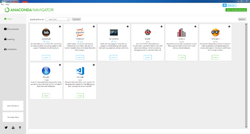 至此,Anaconda 3.5 windows版就安装设置好了,打开程序找到Anaconda Navigator,启动后可以看到: