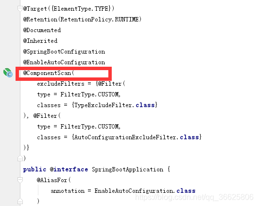 先看看@ComponentScan 这个注解,它是当容器启动的时候,用来扫描启动类底下所有的类以及所有子包下面的类。
