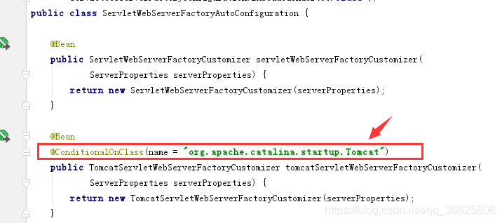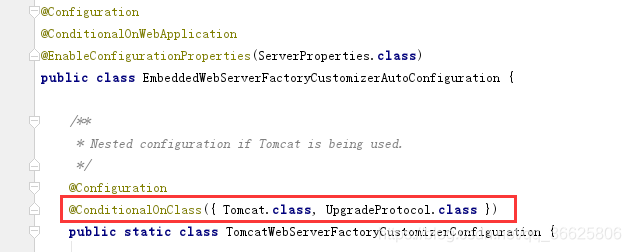 找到 EmbeddedWebServerFactoryCustomizerAutoConfiguration ,可以看到SpringBoot为用户内置的Tomcat