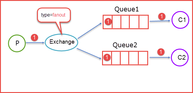 如果 Routing Key=A.C.E 这时候会被同时路由到 Queue1 和 Queue2 中,如果 Routing Key=A.F.B 时,这里只会发送一条消息到 Queue2 中。