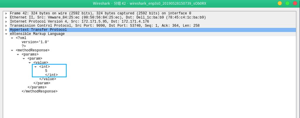 通信使用 HTTP 协议,XML 文件传输格式。传输的字段包括:方法名 methodName,两个参数 2,3。
