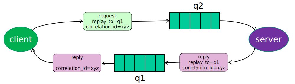 客户端创建 Message 时指定 reply_to 队列名、correlation_id 标记调用者。