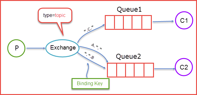 该类交换器通过消息的 Routing Key 与 Binding Key 的模式匹配,将消息转发至所有符合绑定规则的队列中。