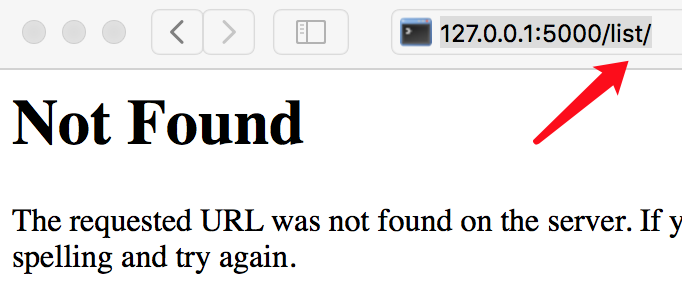 然后访问该函数,可以看到当我们访问127.0.0.1/list/时是访问不到的: