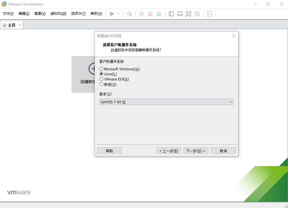 4、选择“Linux”,版本选择“CentOS 7 64位”,点击“下一步”;
