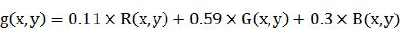 什么是图片的特征码,及图片和特征码为一对一的关系,知道特征码就能确定这个图片是啥,因此我的程序内置了特征码,然后获取雷区截图,通过分析rgb值得到特征码和已有的特征码比较,相同则确定了该位置是个啥。我借鉴了该文章图像识别技术的图像灰化,及将一张彩色图片灰化为两个不同的值,及图片二值化。使用如下算法