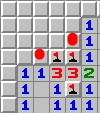 第一步,找到必定为雷的位置,如下图所示,之所以能得出标旗位置,是因为周围有数字可以确定这是一个雷。因此有下面的准则