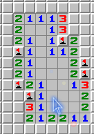 此时对于左边的3右边的2来说雷的数量已经够了,可以中键点击这两个格子。此时这些点已经没有意义,可以不考虑了