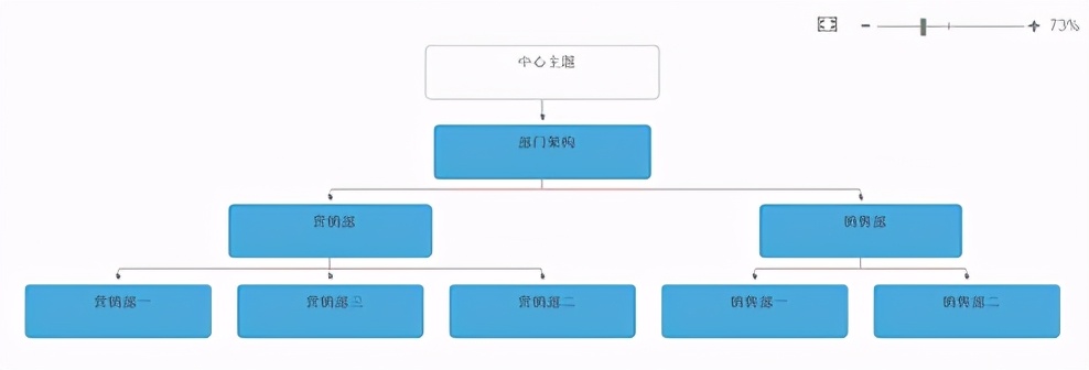 完成所有的部门架构输入后,用户再回到组织图表的正常视图,就可以获得一个版面整洁的组织导图。大纲视图中输入的所有内容都会相应地更新到正常视图中。