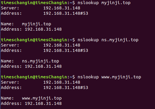 148 PTR ns.myjinji.top. // 192.168.31.148 解析了ns.myjinji.top.