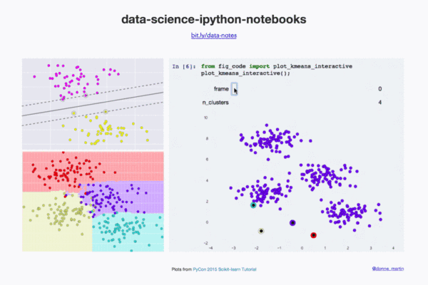 donnemartin/data-science-ipython-notebooks(https://github.com/donnemartin/data-science-ipython-notebooks) 综合型的数据科学教程;