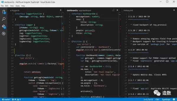 另一个选择可能是Visual Studio代码。 这是由Microsoft开发的文本编辑器,但也可以用作IDE。 Visual Studio的一个好处就是Git集成。 像Atom一样,您可以使用此应用程序轻松地在存储库中提交,同步和创建分支。