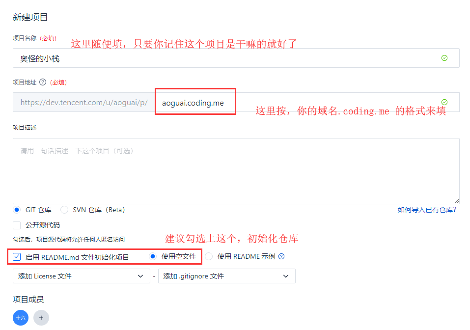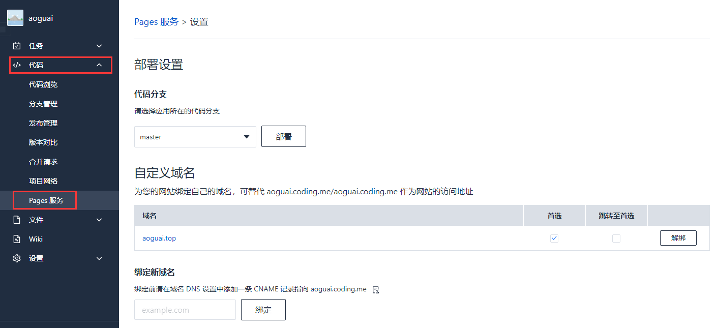 比如我的域名是aoguai, 格式就是:aoguai.coding.me