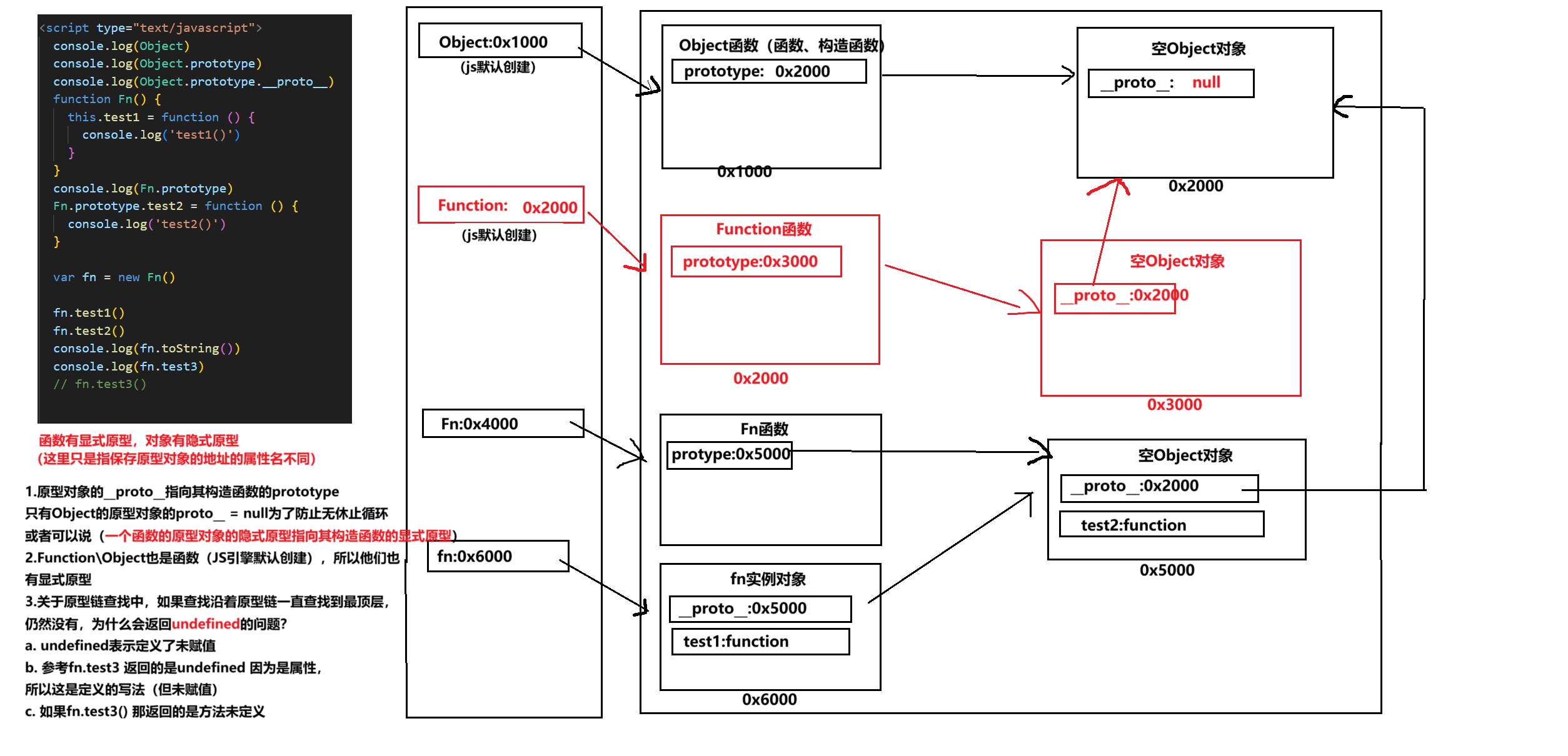 - 特殊的:明确 Object显式原型对象的__proto__(隐式原型对象)值为null,因为不为null 那就无限循环了(特殊情况)