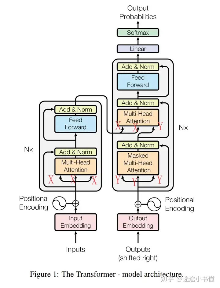 那么右边MHA(Multi-Head Attention)的三个输入都是同一矩阵: X, X, X。