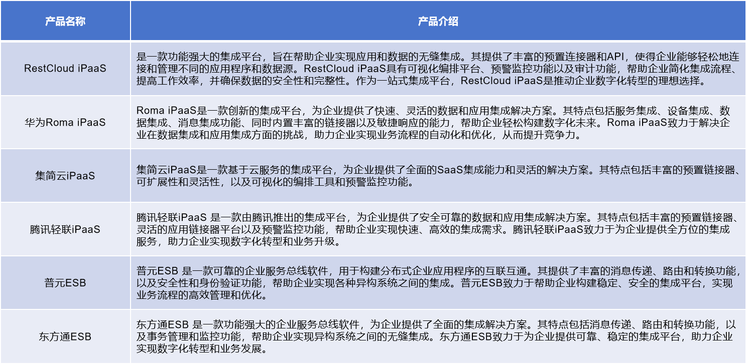 国内典型的iPaaS以及ESB供应商