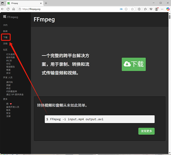 1、前往FFmpeg官网,点击下载