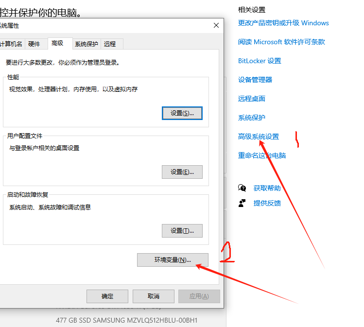 2、选择高级系统设置,选择环境变量