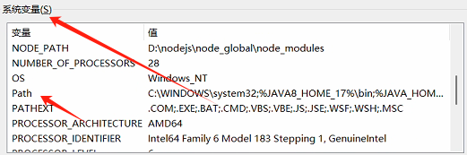 3、在系统变量中选择path进行编辑