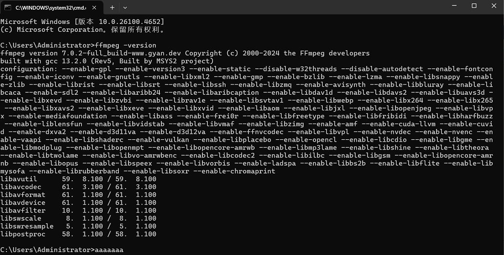 cmd输入ffmpeg -version 如果出现版本号就说明配置成功