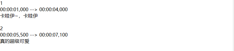 这是一个srt的字幕文件,简单用Windows自带的txt写了一个简单的的srt文件,内容就如上所示