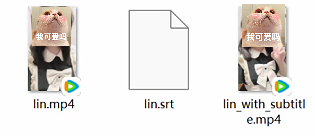这个就是生成的结果,lin是原视频,lin.srt是字幕文件,lin_with_subtitle是生成后带字幕的文件
