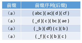 开始挖掘频繁序列,以a为前缀的投影数据库为例: