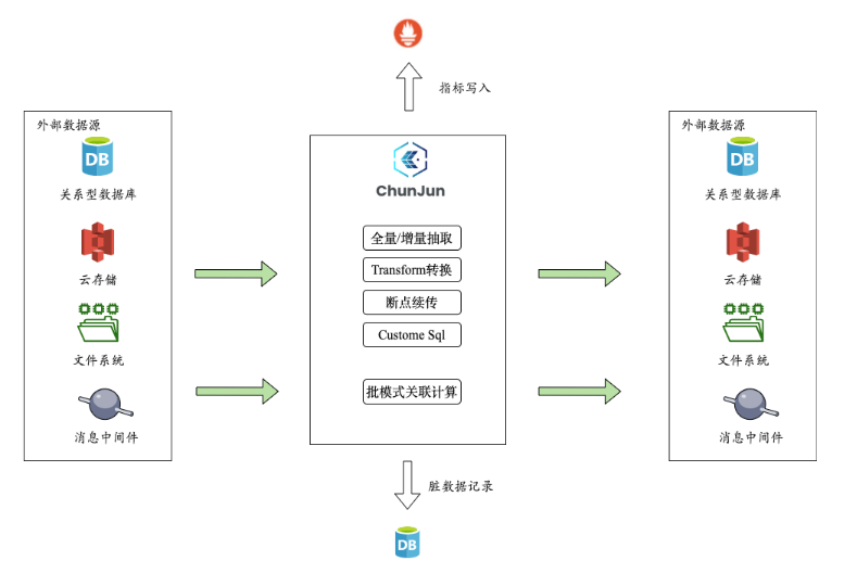 当数据被采集到指定的存储层后,会结合存储类型以及业务时效性对数据进行常规的业务计算。ChunJun Sql能支持流批计算的能力来源于对元数据的统一管理以及在DataStream API上支持批执行模式。这样增强了作业的可复用性和可维护性,使得ChunJun作业可以在流和批两种执行模式之间自由进行切换并只需要维护一套代码,无需重新写任何代码。