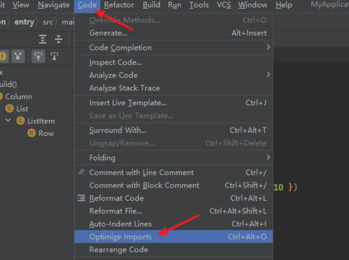 使用编辑器提供的Optimize Imports,可以快速清除未使用的import,并根据设置的规则对import进行合并或排序。选择文件或目录,使用快捷键Ctrl+Alt+O(macOS为Control+Option+O),或单击菜单栏Code > Optimize Imports。