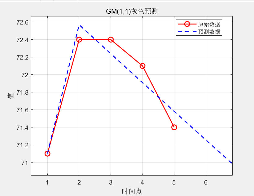x0 = [71.1, 72.4, 72.4, 72.1, 71.4]; % 原始数据