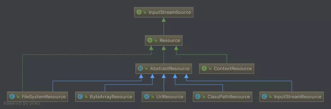 Resource,对资源的抽象,它的每一个实现类都代表了一种资源的访问策略,如ClasspathResource 、 URLResource ,FileSystemResource 等。