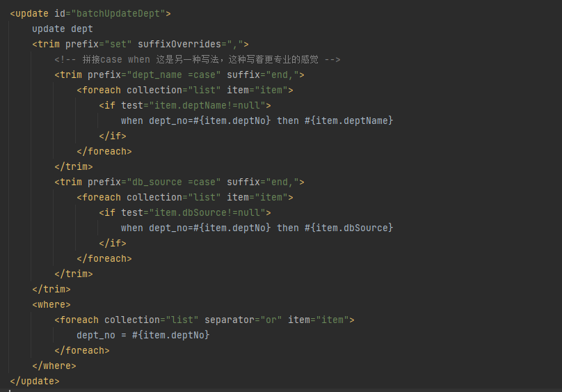 上面图中的更新方法Oracle和Mysql都支持,当然还有很多批量更新的方法,上面一种都通用,开发中可以主要选择上面的批量更新方法进行批量更新。