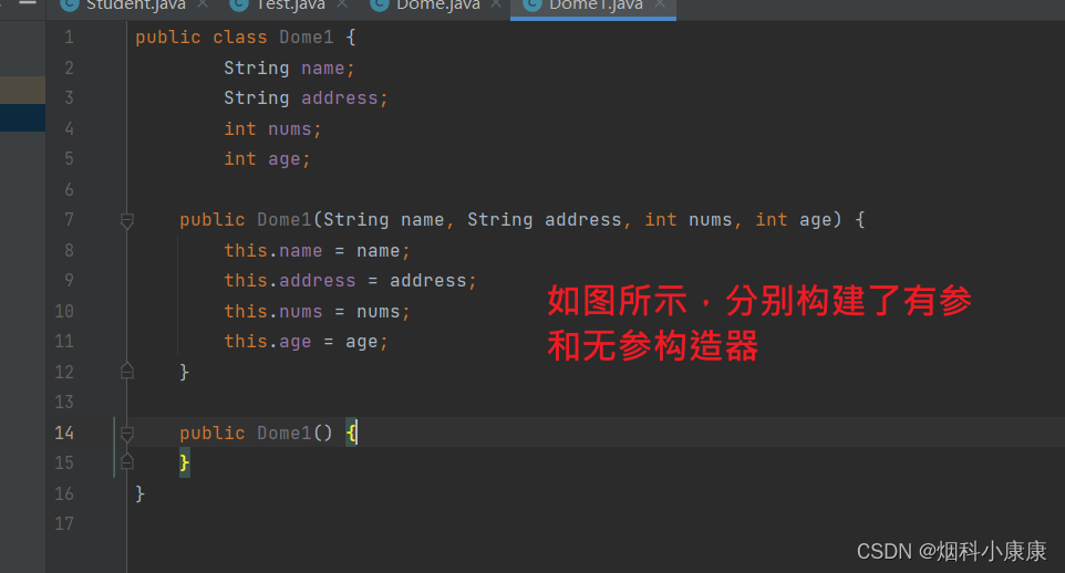 //有参构造:一旦定义有参构造,无参就必须显示定义。